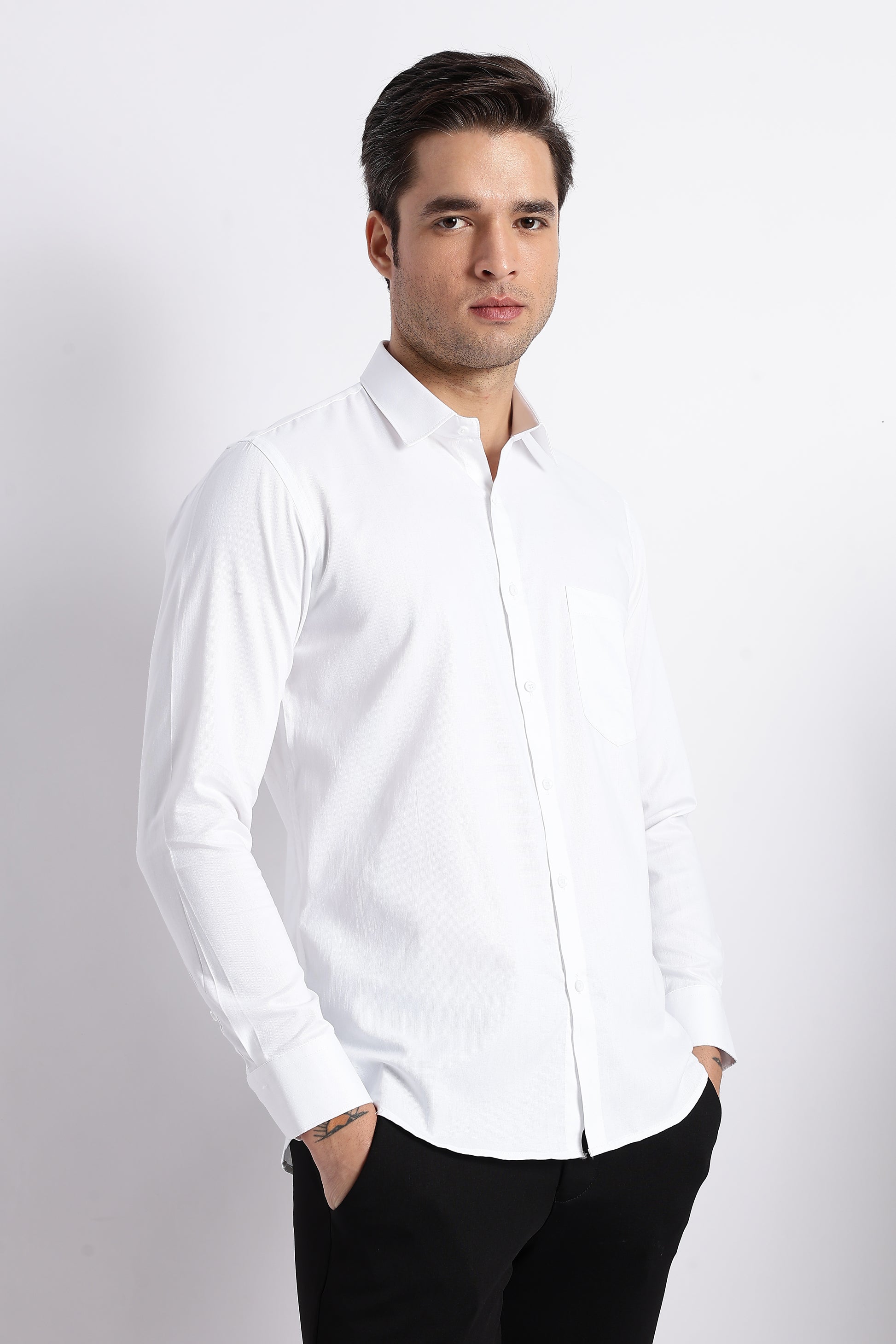 K&K Textured White 100% Cotton Oxford Shirt